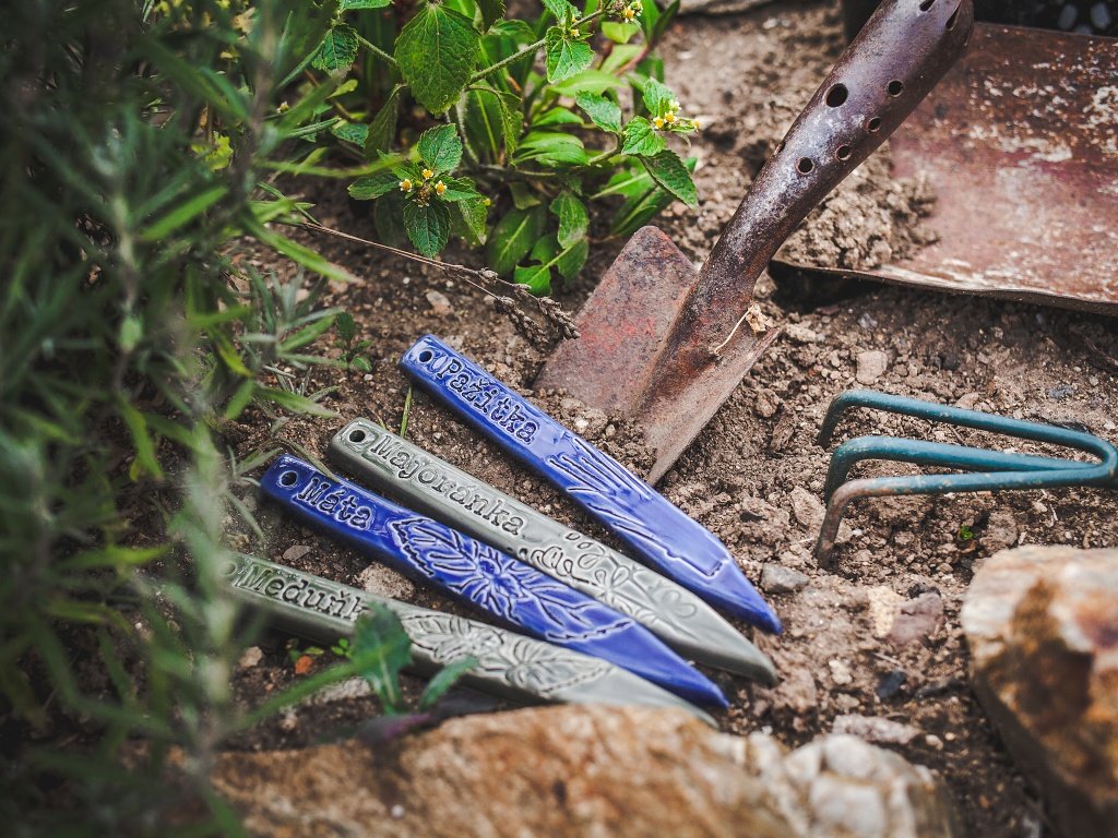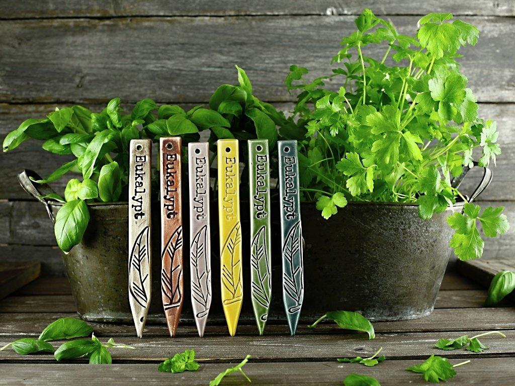 Keramický zápich na bylinky lze použít do květináčů, truhlíků a záhonů.