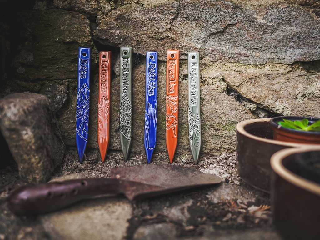 Keramický zápich na bylinky lze použít do květináčů, truhlíků a záhonů.