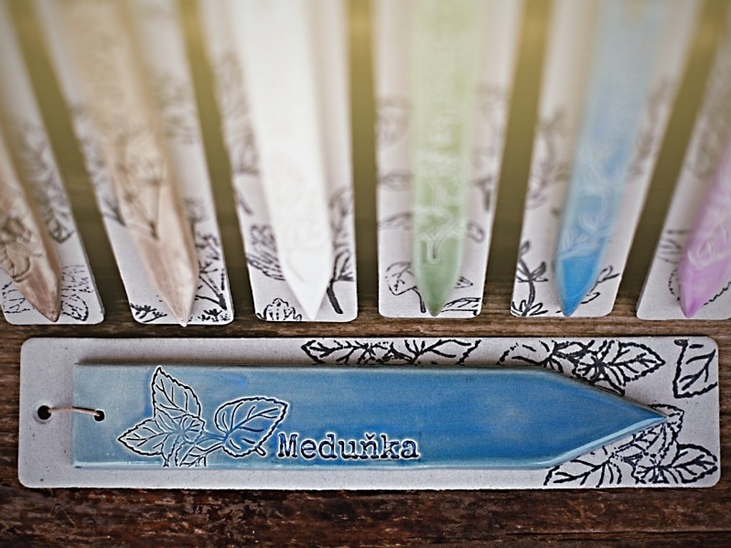 Keramický zápich na bylinky lze použít do květináčů, truhlíků a záhonů. Na druhou stranu keramického zápichu lze napsat den sadby, popř. další informace.