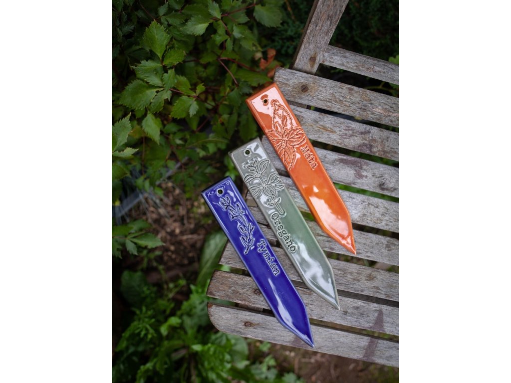 Keramický zápich na bylinky lze použít do květináčů, truhlíků a záhonů.